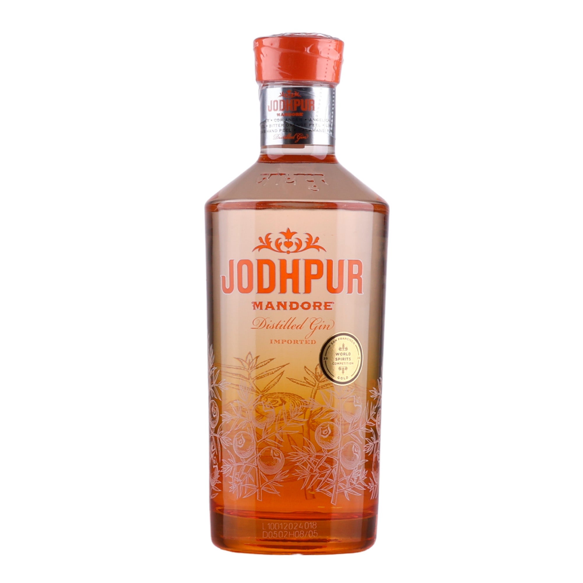 Jodhpur Mandore Gin is een Spaanse gin, geïnspireerd door de rijke cultuur van India en de Mandore-tuin bij Jodhpur, en combineert de klassieke jeneverbesmaak met exotische Indische citrusvruchten zoals bittere sinaasappel, calamansi en Boeddha's hand, evenals tonen van gember en koriander.