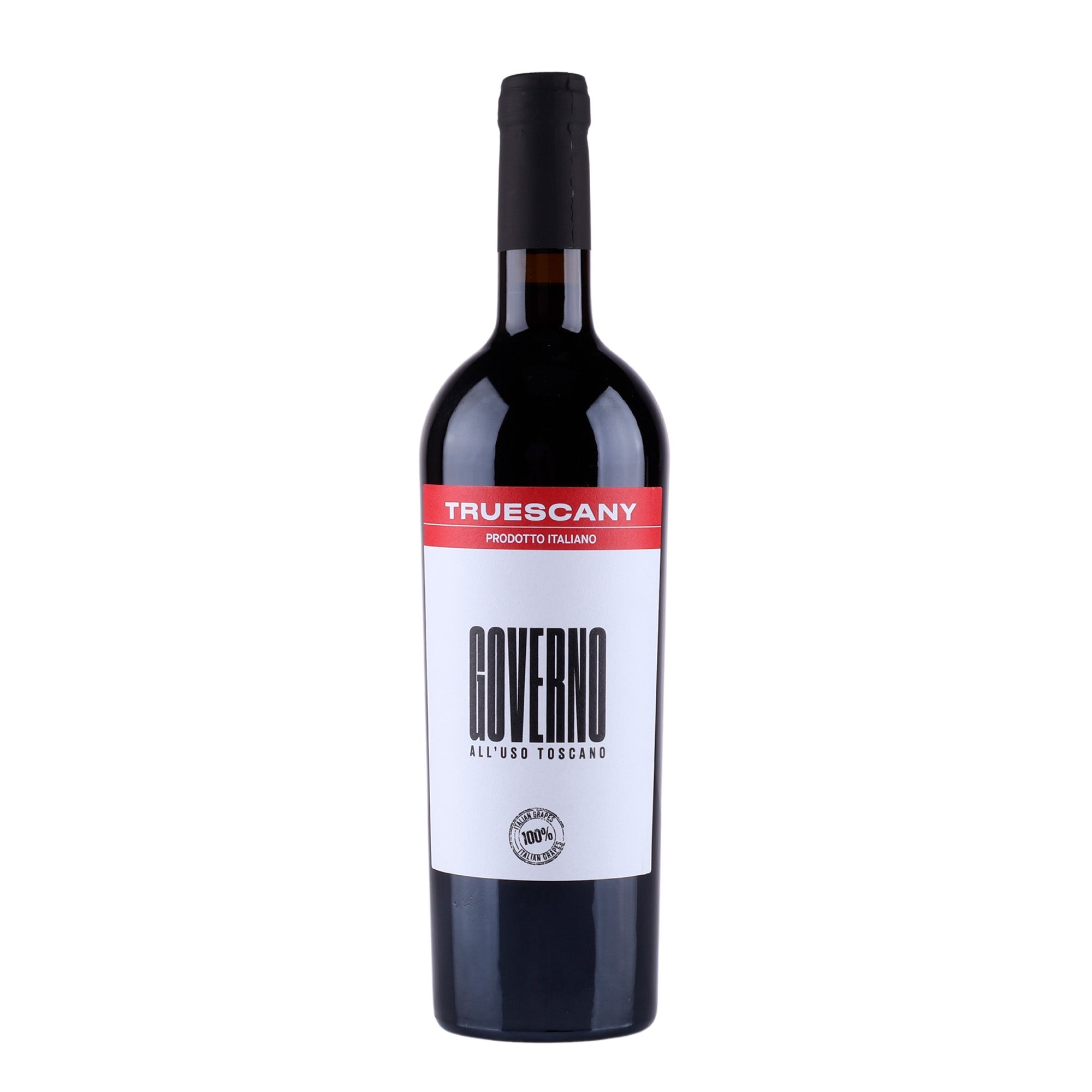 Truescany Governo is een Italiaanse rode wijn uit Toscane, gemaakt van 100% Sangiovese-druiven met behulp van de traditionele Governo-methode. Deze wijn heeft een diepe robijnrode kleur en biedt intense aroma's van rijpe rode vruchten zoals kersen en pruimen, vergezeld van subtiele kruidennoten en een lichte zoetheid.